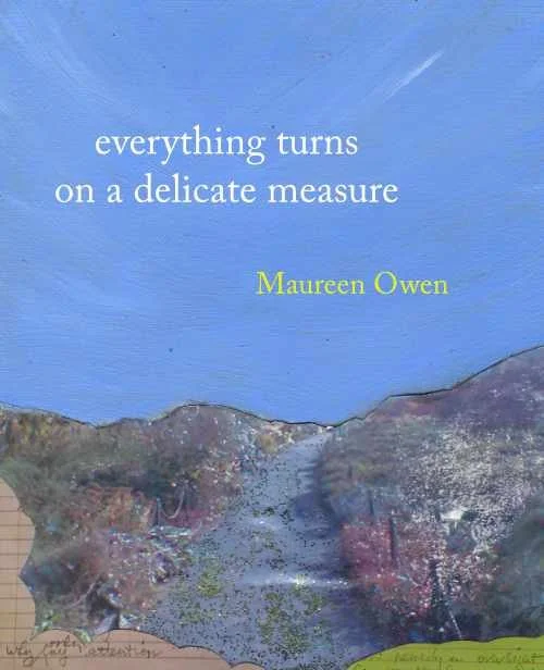 Maureen Owen's latest title is everything turns on a delicate measure, BlazeVOX Books. Recent publications include let the heart hold down the breakage Or the caregiver's log, Hanging Loose Press and Poets on the Road, a collaborative reading tour blog with Barbara Henning, City Point Press. She is former editor-in-chief of Telephone Magazine and Telephone Books and the author of thirteen books of poetry. Her title Erosion’s Pull, Coffee House Press, was a finalist for the Colorado Book Award and the Balcones Poetry Prize. Her collection American Rush: Selected Poems was a finalist for the L.A. Times Book Prize and her work AE (Amelia Earhart) was a recipient of the prestigious Before Columbus American Book Award. Honors include grants from the Foundation for Contemporary Arts, the Fund for Poetry and a Poetry Fellowship from the National Endowment for the Arts. She has taught at Naropa University and served as editor-in-chief of Naropa’s online zine not enough night. She can be found reading her work on the PennSound website.